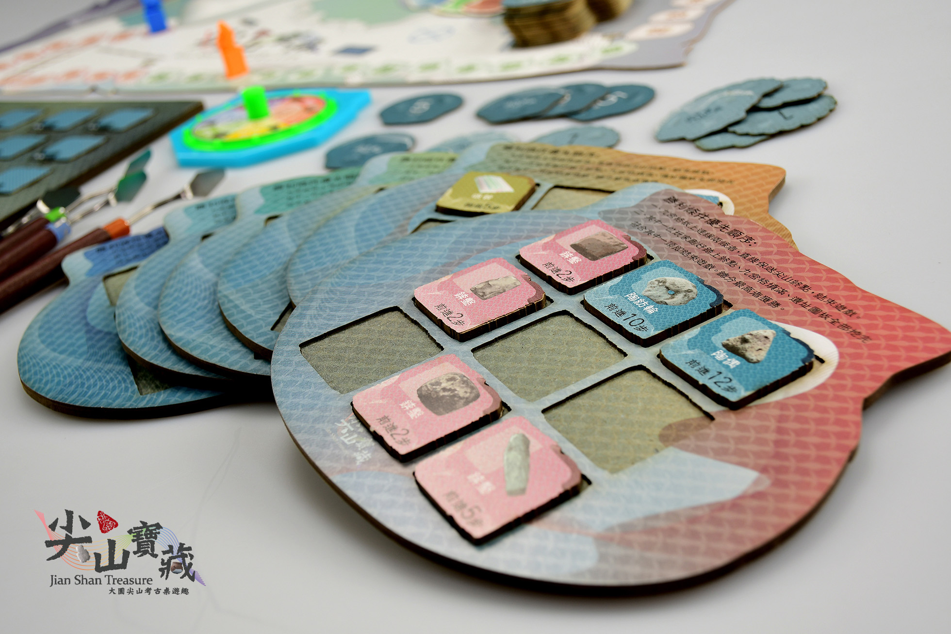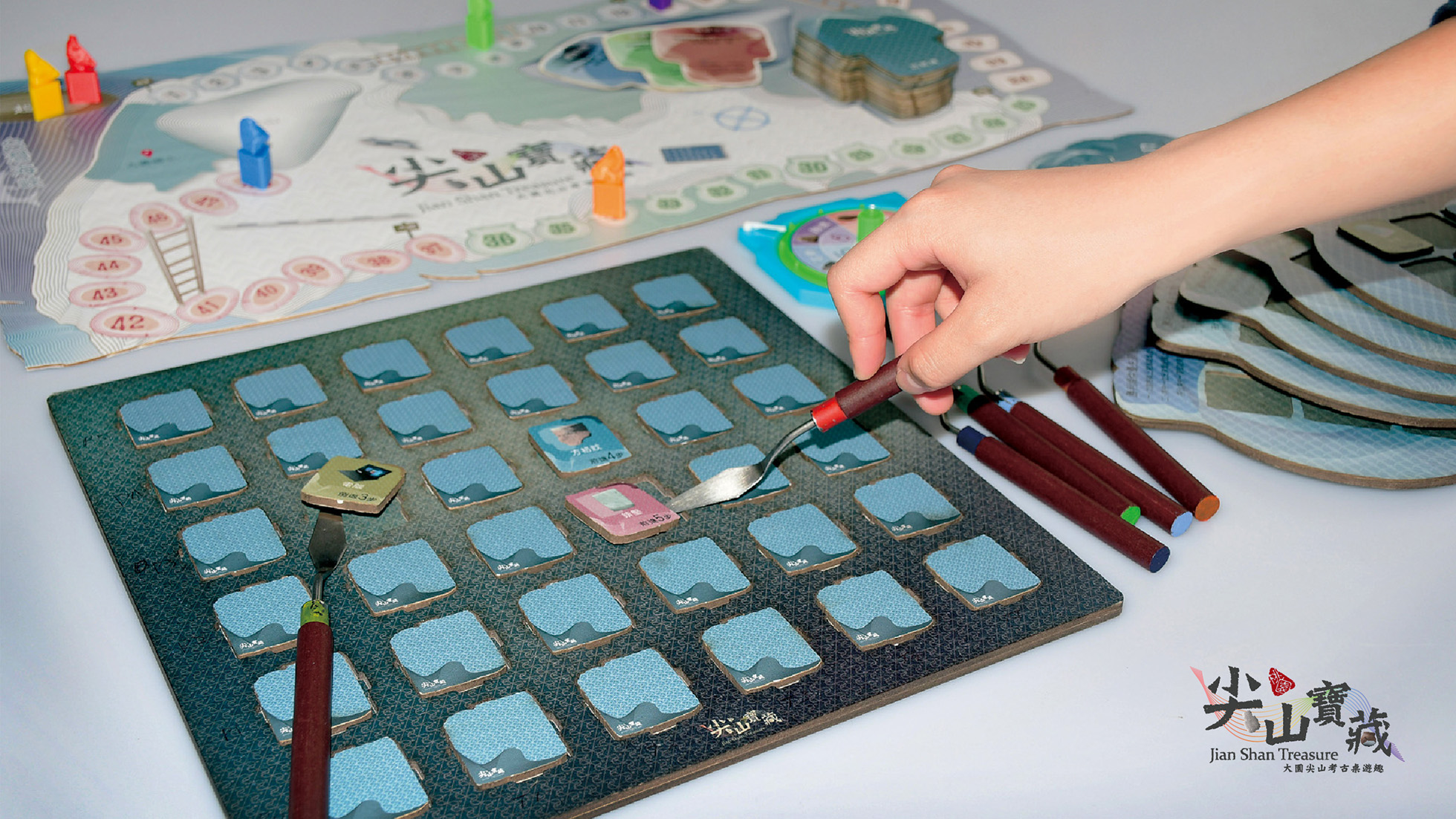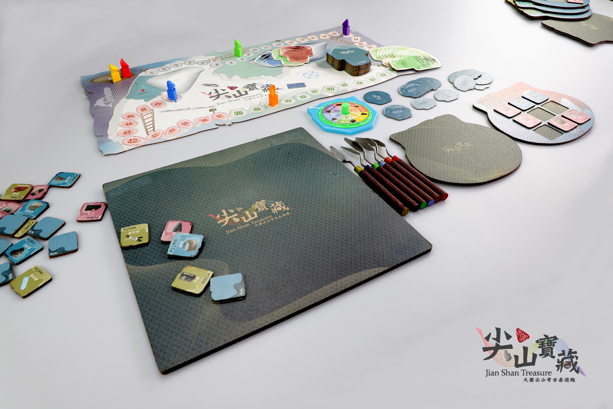 《尖山寶藏 Jian Shan Treasure -大園尖山遺址考古趣》 為一款棋盤式教育類遊戲。此款遊戲結合桃園市定遺址「大園尖山考古遺址」,遺址位於桃園市大園國小校內,主要的文化類型屬新石器時代的「圓山文化」晚期,經內政部文化資產評鑑為3.5的等級。根據調查顯示:本遺址距今逾2800年,有新石器時代晚期「圓山文化」、「植物園文化」的豐富「堆積」,以及新石器時代中期「訊塘埔文化」的褐陶等「遺物」。在目前已出土遺物裡,有陶片、陶甕、石刀以及及捕魚用固定漁網的網墜等,但部分遺址因掩埋在現代建築底下,難以繼續挖掘,塵封在歷史的層層堆疊中。