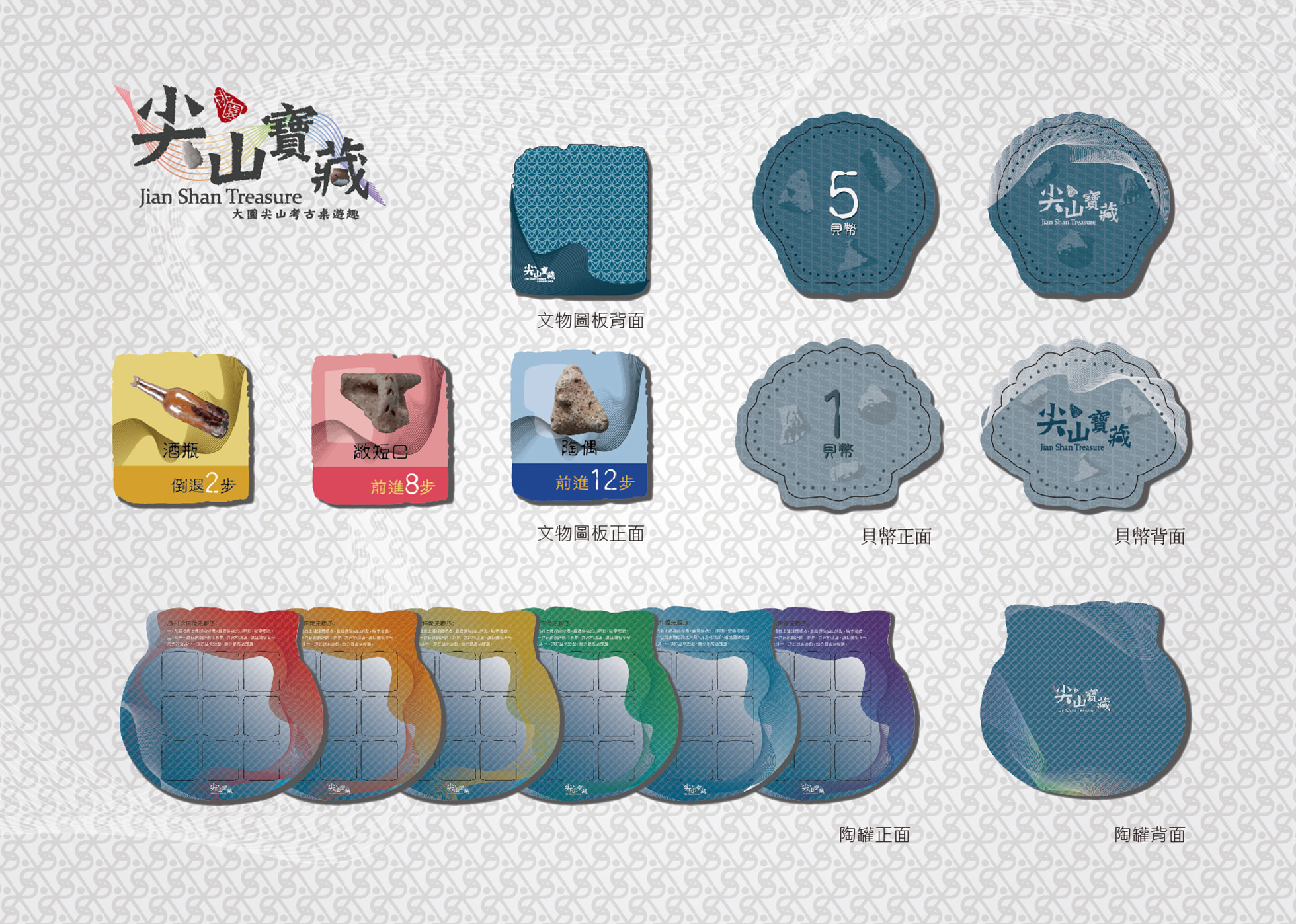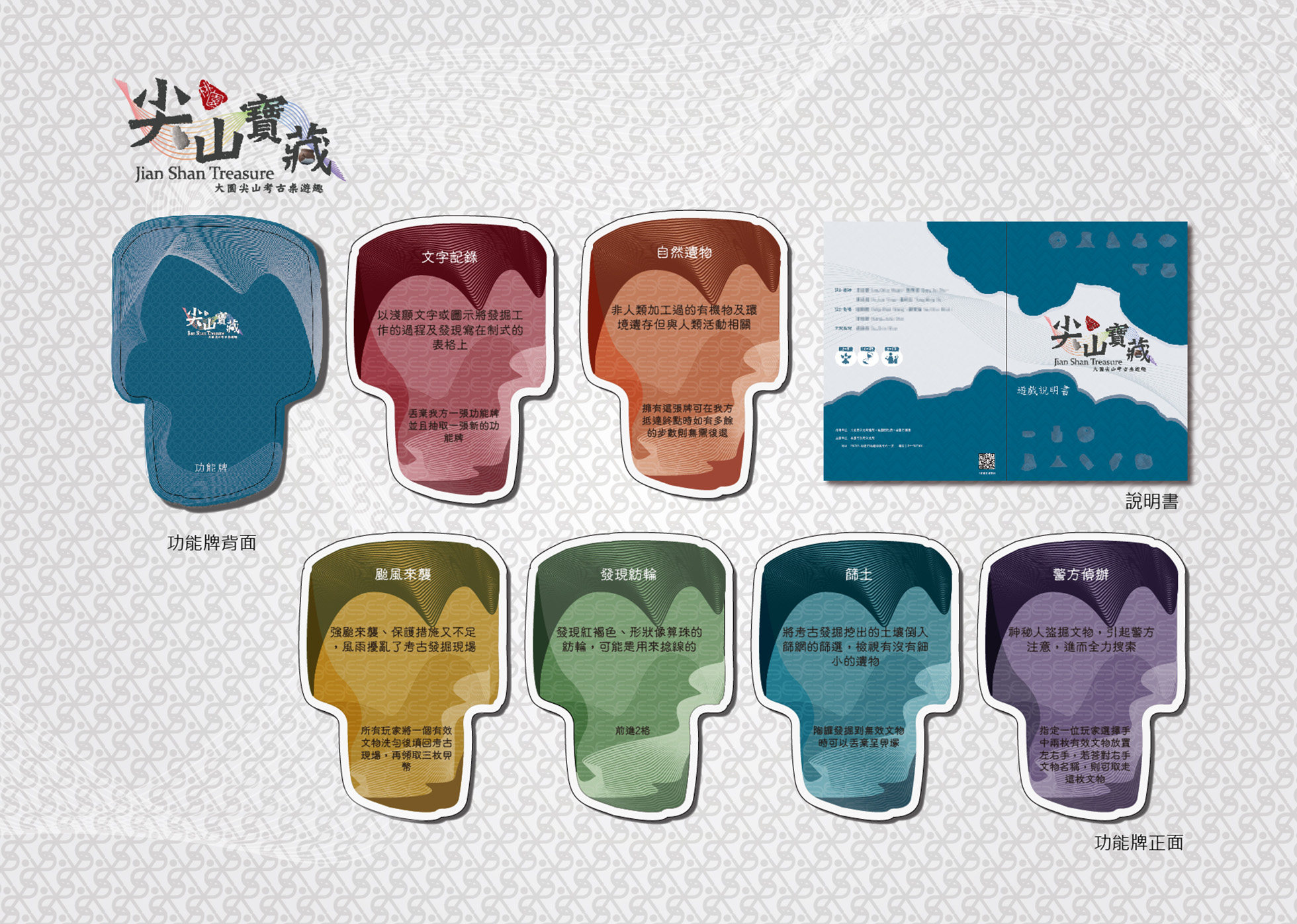 本遊戲的設計初衷是透過「遊戲式學習」與「認知分析」,讓玩家在挖掘過程中瞭解桃園在地文化、考古專業知識。作品結合大園尖山遺址的許多特色,例如:記分板融合遺址的地理環境,棋盤設計模擬考古現場,並以石錛、有肩石斧等文物做為卡牌造型、陶罐圖像製成文物蒐集圖板、貝殼則為計量單位等。在視覺設計方面:主場景以地形圖上的閉合曲線「等高線(線構成)」為主,並將陶器的紋飾(陶紋)向量幾何化再重新排列,融入視覺設計元素。綜上所述,本款作品的元素深富巧思與設計意涵,使玩家在體驗時能以「玩中學」的方式認識遺址特色與考古知識。