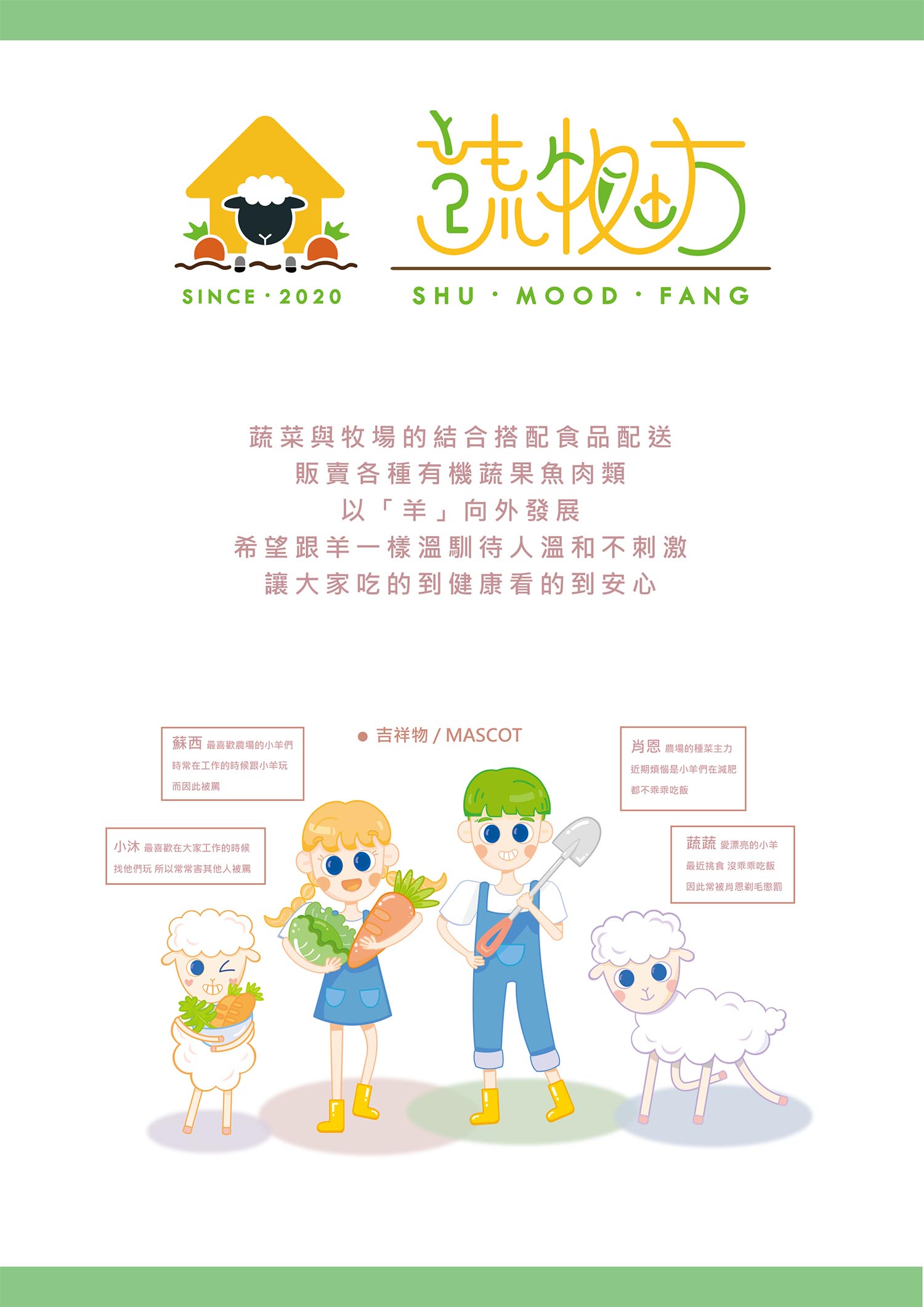 蔬菜與牧場的結合,搭配生鮮配送,販賣各種有機蔬果,主打溫和,以「羊」為蔬牧坊的精神指標,如羊的温和溫馴,帶給我們入溫暖,讓大家吃的到健康,也看的到安心。