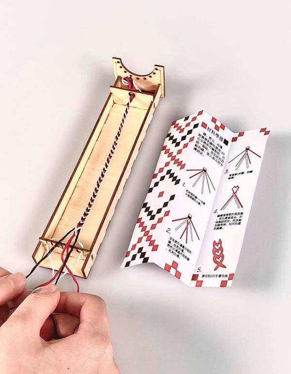前衛設計:以原住民為主題,希望能讓大眾們更能了解原住民文化故事,其中以編織最能代表文化傳承,是歷史的延續,編織上的紋路也展現其族群的祖訓精神和重要意義。相較於以往的傳統大型編織器,我們以簡單輕巧的設計方式來呈現編織器,希望也能在日常生活中也能體驗到編織的文化。編織器主要的材料為木板,以雷切的方式在木板上刻畫原住民的圖騰,用新穎的方式來保存傳統的文化風格。