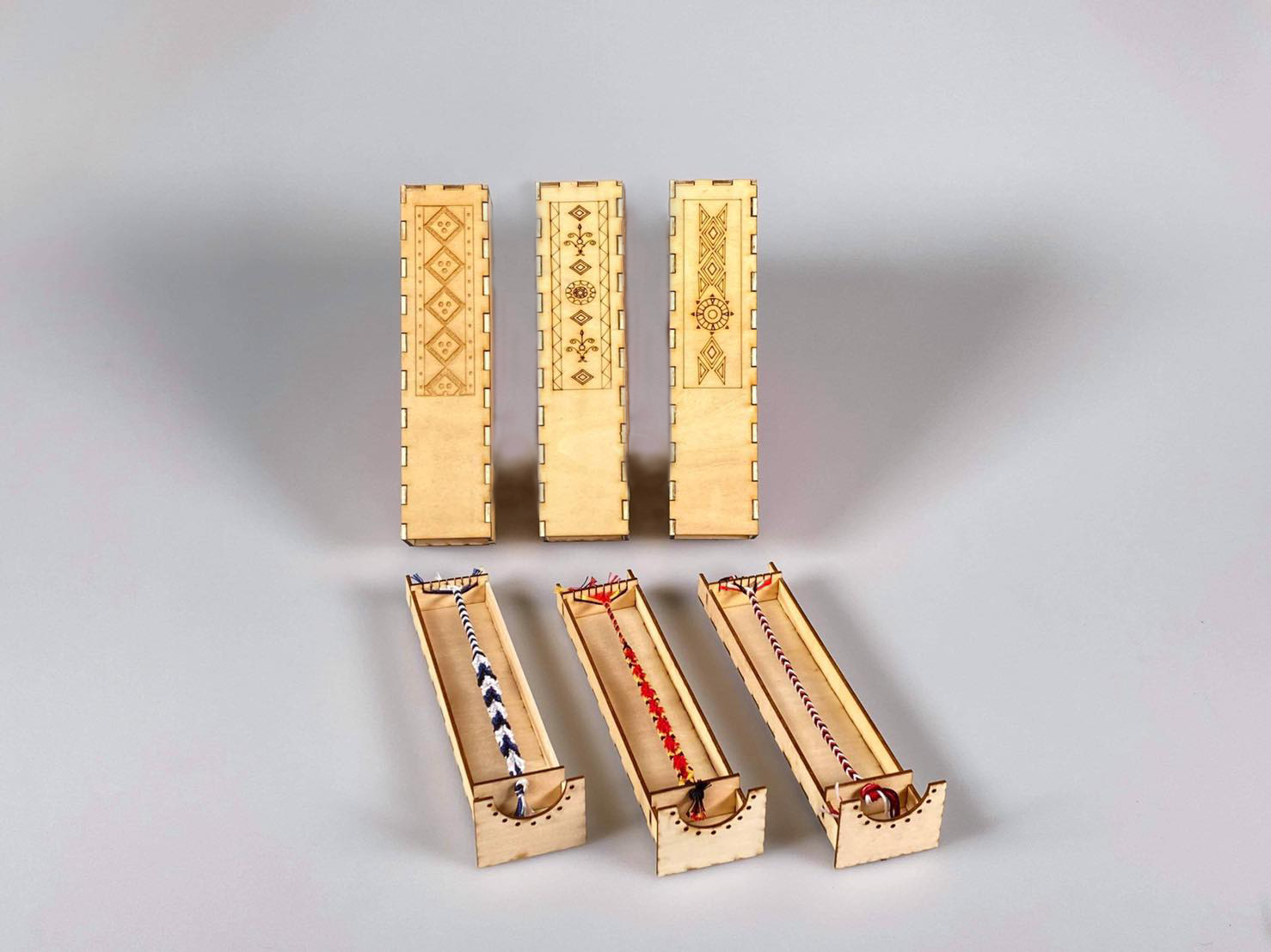 我們以原住民為主題做成小編織器,編織器代表著希望有更多人能夠透過編織了解原住民的傳統文化並且體驗看看傳統編織的感覺,我們作的編織器分為三族(達悟族 排灣族 阿美族)每一個編織器都擁有各個族群的圖騰,編出來的手鍊顏色也都擁有各個族群所代表的顏色,另外盒子裡面有附教學說明書 讓人們可以方便學習編織,讓大家體驗傳統文化的編織。一開始享用原民這個主題是因為我們想把台灣的文化融合起來所以突然靈機一動就想到要用原住民的方式去呈現我們的作品,並且讓更多人知道原住民的文化特色和傳統文化,並保持尊重的態度去看待,還讓更人了解手工編織的特別和濃濃的鄉土民情,彷彿隻身在世外桃源,踏遍台灣的每個族群和部落。