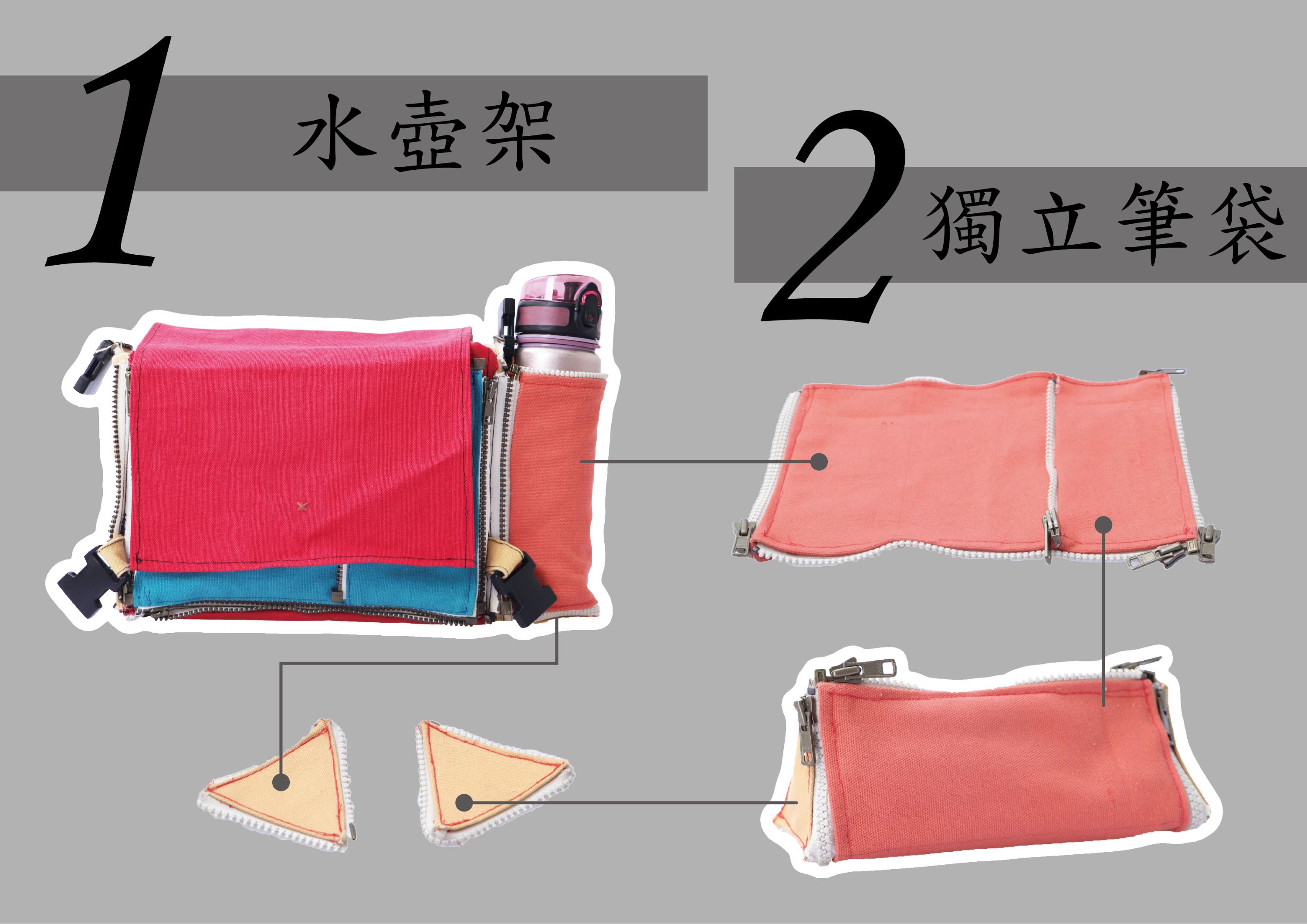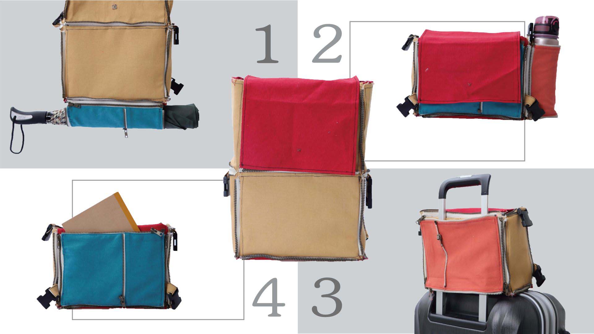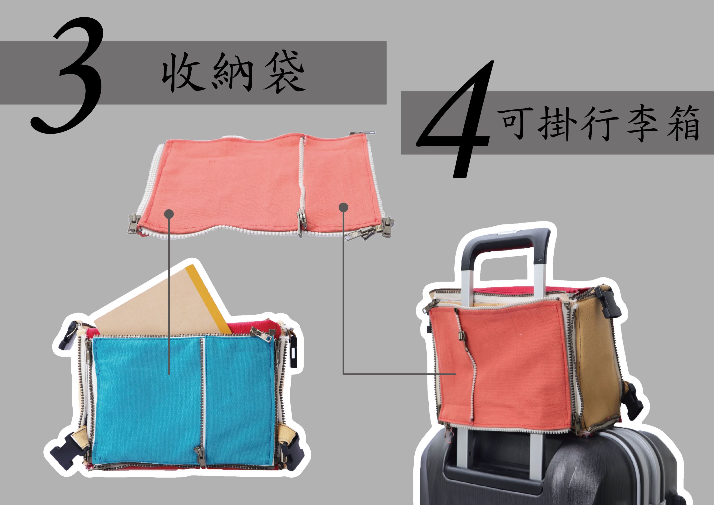 市面上的背包皆為規格統一所製作,我們打破傳統,以客製化的形式作為概念,用拉鍊的自由拆裝代替縫合的單一性,跳脫背包固定規格的限制,做出我們的「拉鍊背包」,裝備的英文「equip」諧音作為聯想,消費者可運用「一塊布」隨心所欲、自由變化,讓百變布成為背包不可或缺的重要配備。