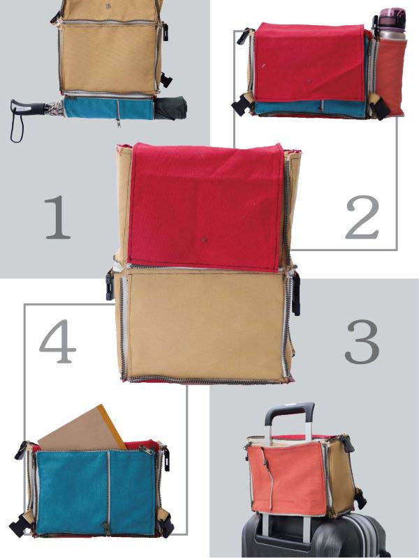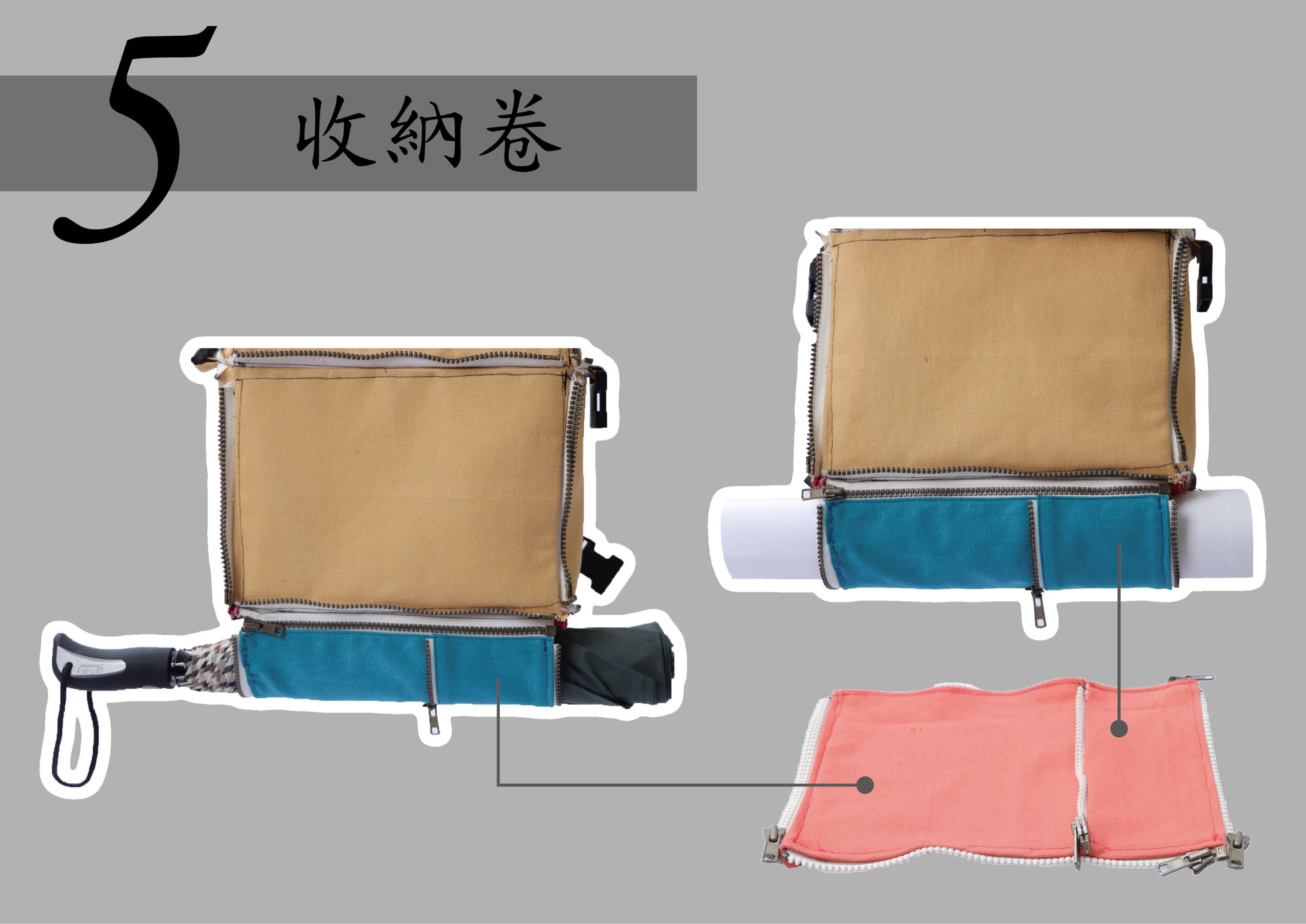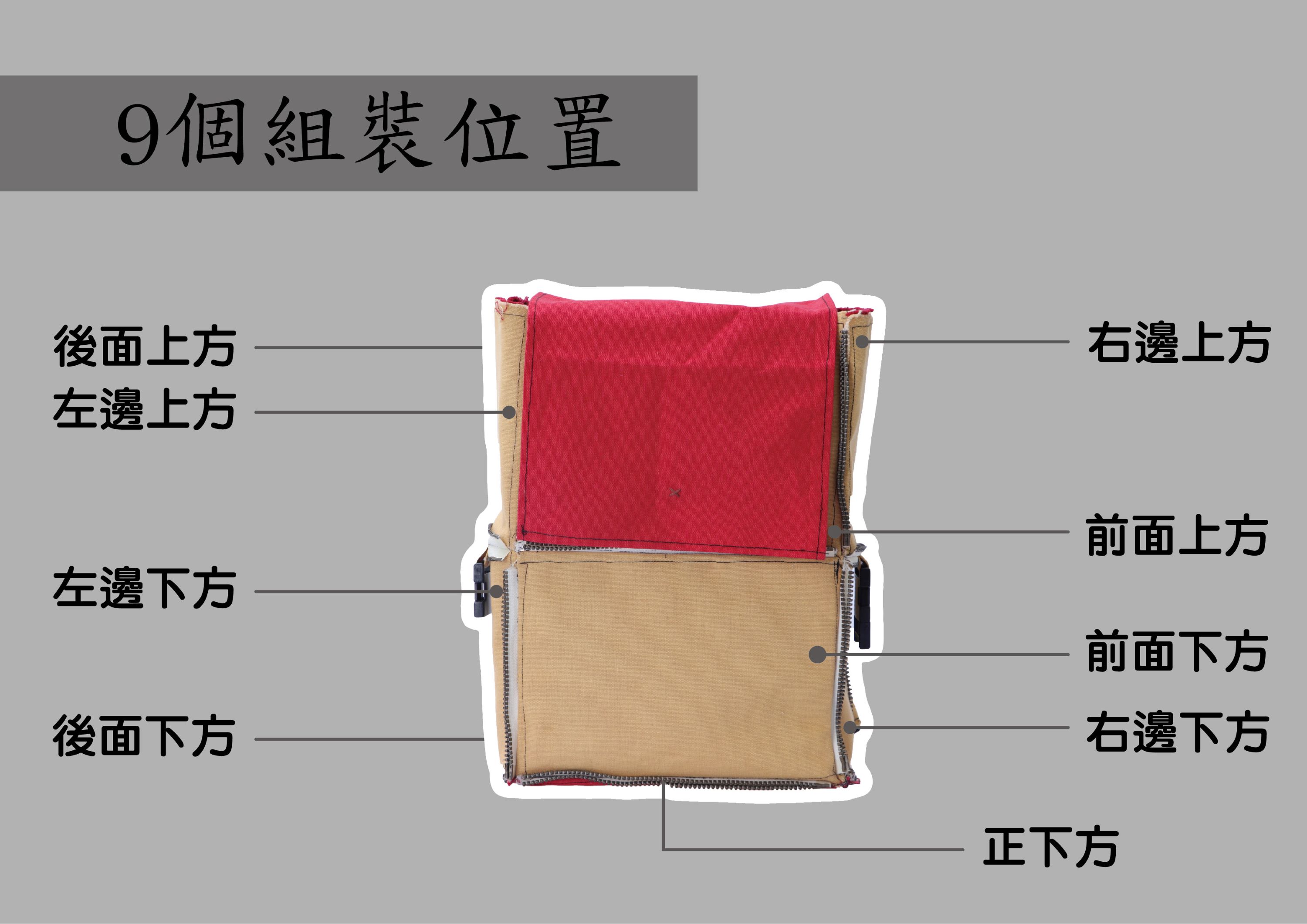 市面上的背包皆為規格統一所製作,我們打破傳統,以客製化的形式作為概念,用拉鍊的自由拆裝代替縫合的單一性,跳脫背包固定規格的限制,做出我們的「拉鍊背包」,裝備的英文「equip」諧音作為聯想,消費者可運用「一塊布」隨心所欲、自由變化,讓百變布成為背包不可或缺的重要配備。