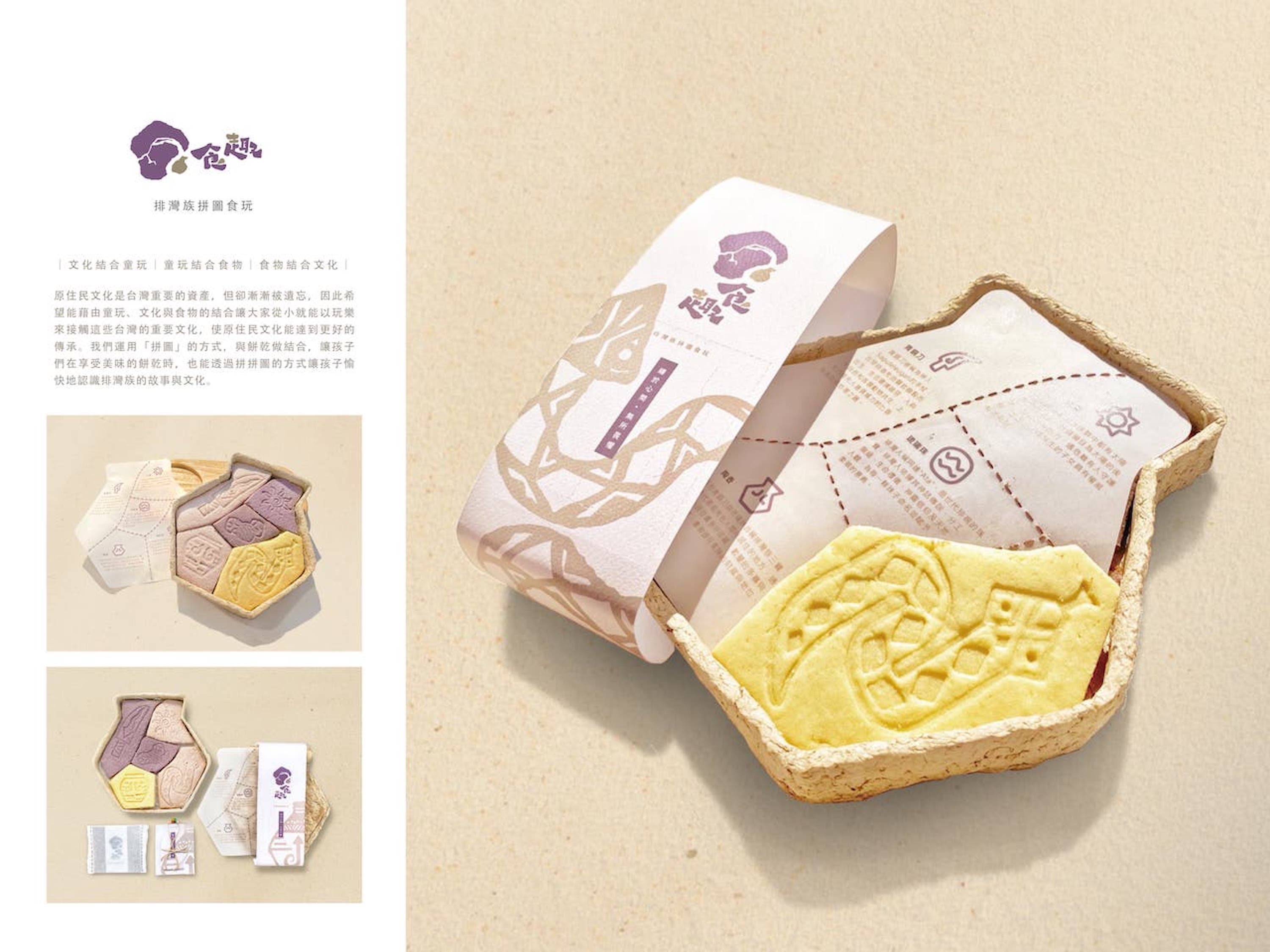 「拼圖」是一種益智遊戲,它能激發小朋友的視覺專注力以及手眼的動作協調性,並且能培養小朋友的觀察力、專注力及耐心,因此將拼圖與餅乾做結合,讓孩子們在享受美味的餅乾時,同時透過拼拼圖的方式認識排灣族的故事與文化。