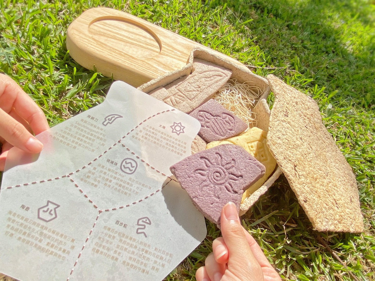 以類似於雕刻的方式讓排灣族主要的文化元素呈現在餅乾上,不僅僅是向閱讀書本一般認識排灣族的文化,而是增添互動性以及娛樂性的方式,帶給孩子愉快且印象深刻的學習過程。