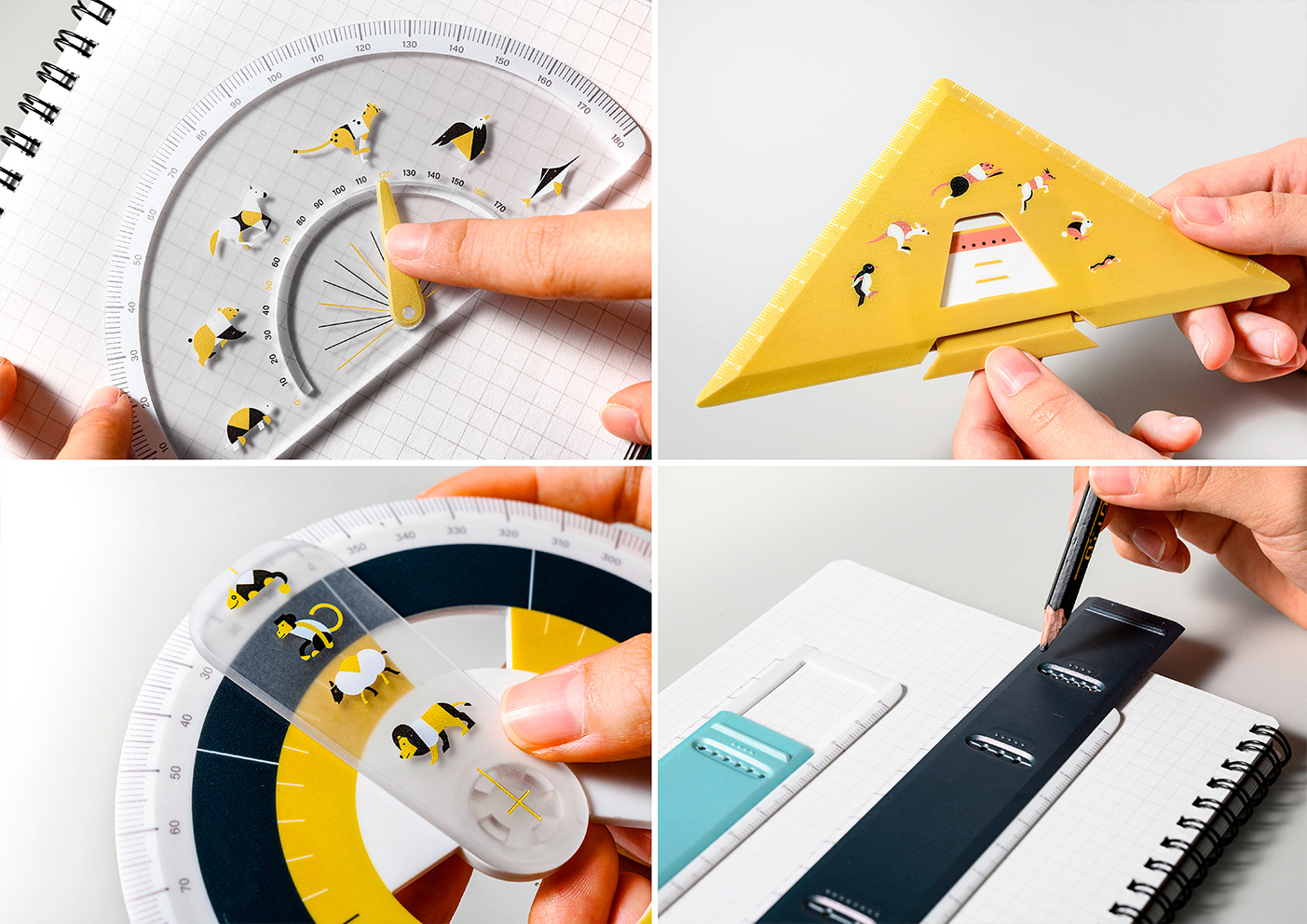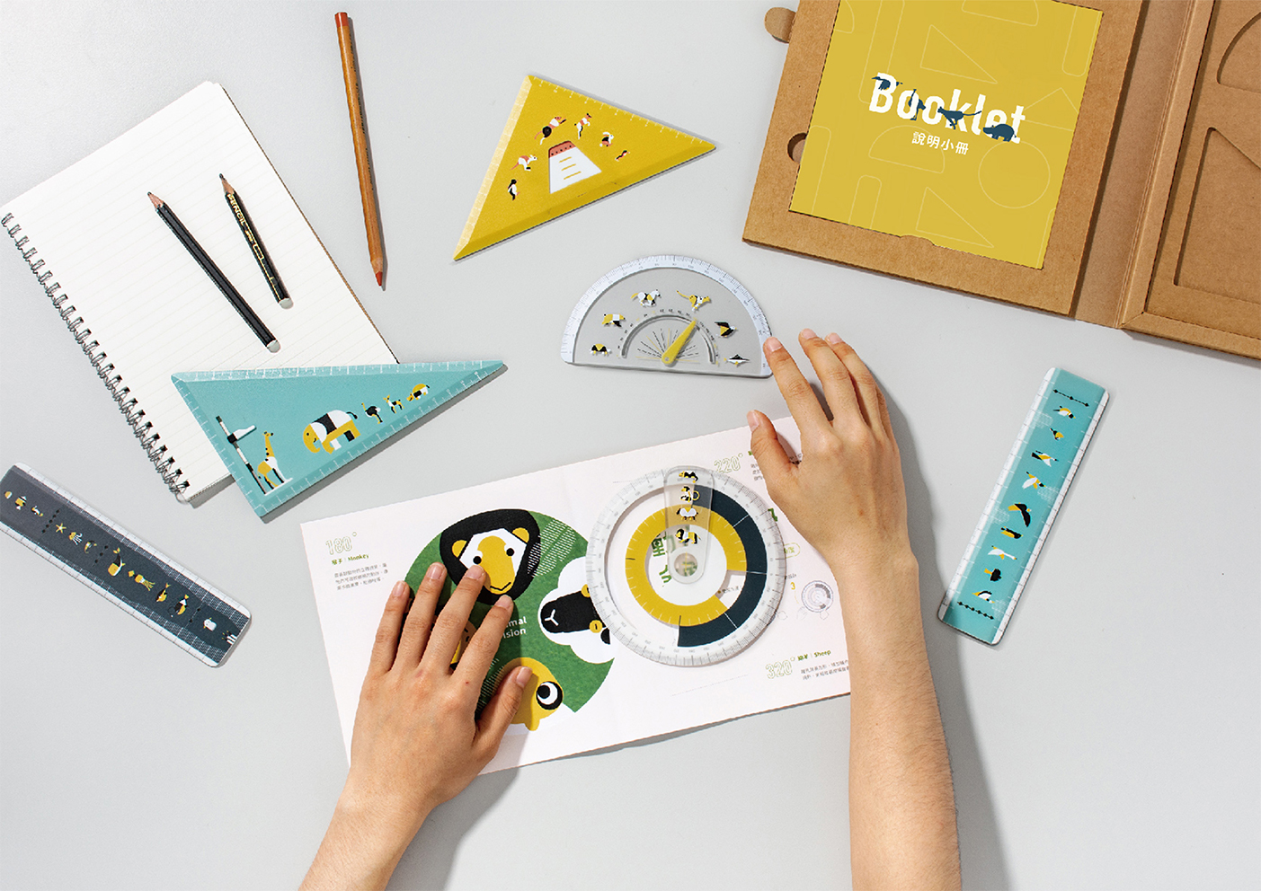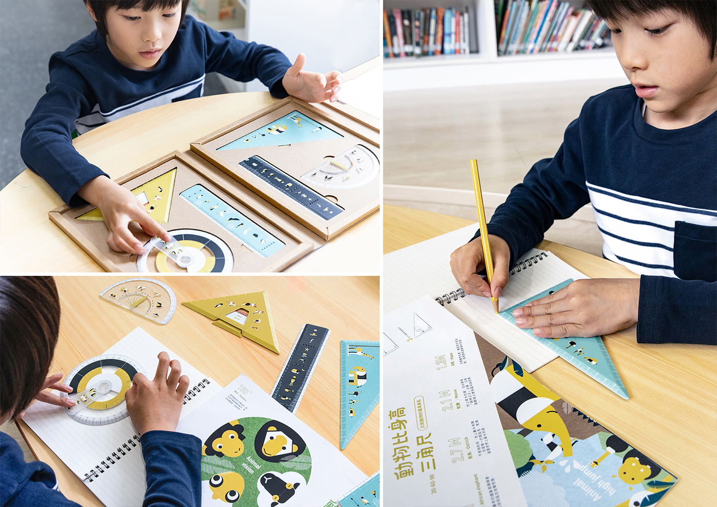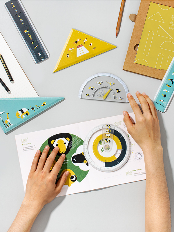 動物普遍受到孩子們的喜愛,因此我們將動物習性的科普知識,應用在「尺」這種文具上,幫助孩童理解抽象的數量單位,並加上互動結構來增加他們的學習樂趣。全套一共有六支尺及一本說明小冊。六支尺的主題分別為:動物的身高、奔跑速度、跳躍能力、視野角度、鳥類飛行高度、海洋生物分布。說明小冊則能進一步介紹上面的動物與尺的使用方式。我們希望孩子們不僅能更喜歡尺這樣的文具,也對地球上的動物多一份認識與愛護。