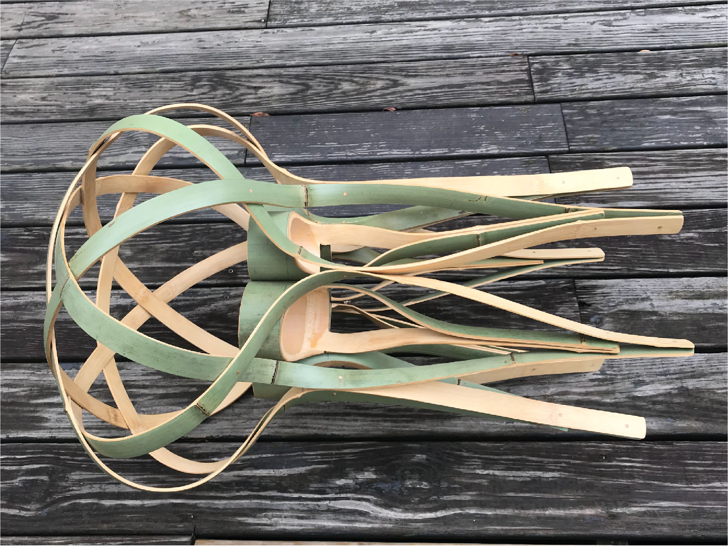 “六剖”是將竹子徑向切割成六等分, 獲得的竹條是最基本的單元。