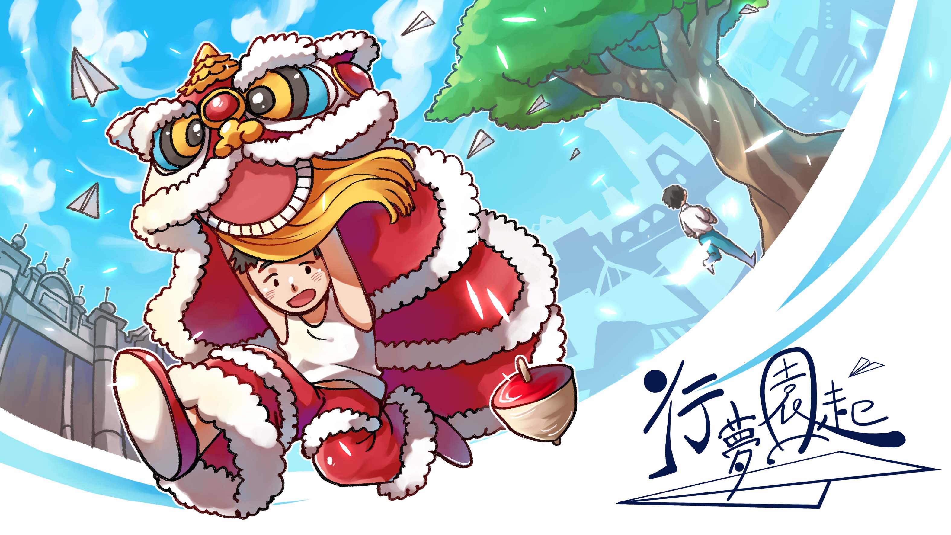 動畫作品「行夢園起」是由五位土生土長的桃園高中生所繪製的短篇動畫。作品中寄寓著今年畢業的我們,期許自己即使在未來便捷發達的生活中也不要忘記了「文化」的傳承,文化是人類非常寶貴的記憶,紀錄著我們一步步走過的腳印,即使在科技發達的未來時代仍是無可替代的存在。