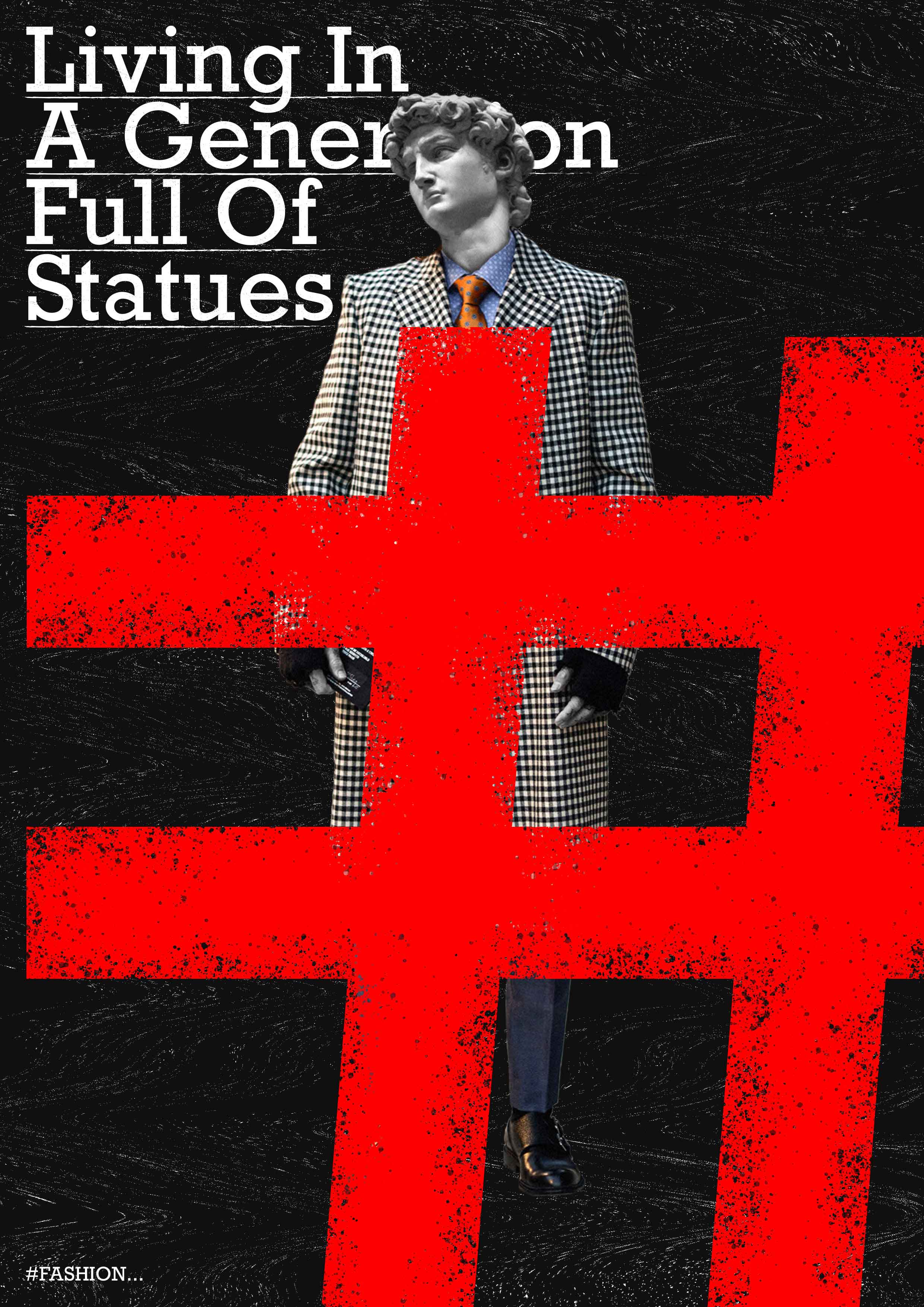 而這個時代的人活得正好跟雕像的意義越來越相同,越來越在意他人眼光的我們,漸漸地活在他人的期許、巴結當中,也漸漸的讓自己做出這樣的假象試著相信這就是自己真正的樣貌,但其實我們默默地變得像雕像一般,為了符合各種期待,試著融入人群、盲從、跟風......等等,這些都是為了跟上大環境的普世價值觀。