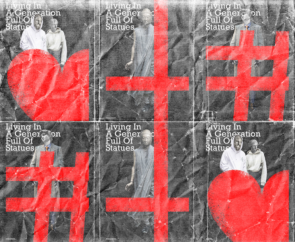 因此挑出了一些雕像與現代的時裝做合成,這種無違和的感覺,就像現代的人就算已經變成了雕像好像也已經無所謂的感覺,透過這樣的畫面視覺,傳達讓大家找尋自己的重要。