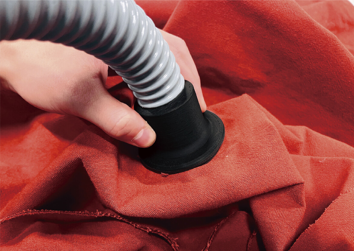 「VacLab 軟雕塑實驗傢俱」是一場利用大氣壓力進行材料加工的製造實驗。透過在密封袋中填充發泡顆粒,並抽取內部氣體使其收縮、硬化,讓使用者藉由控制氣壓來調整軟硬以及造型,進而自由塑形與雕塑,為傢俱設計帶來更多可能性。特殊氣閥設計方便調控內部氣壓,讓使用者可以「參與傢俱的創造過程」;藉由先乘坐再抽取氣體,使坐面完美貼合身形曲線,以更靈活、簡單的方式創造客製化的體驗,創造出「貼合身體曲線的客製品」;抽真空的過程中物件會收縮形成特殊的皺摺紋理,成為另一種「傢俱雕塑品」。 VacLab嘗試以另一種製造邏輯,試圖鬆動「客製傢俱」與「高成本」的關係,讓客製品也可以很環保,藝術品也可以很靠近生活。