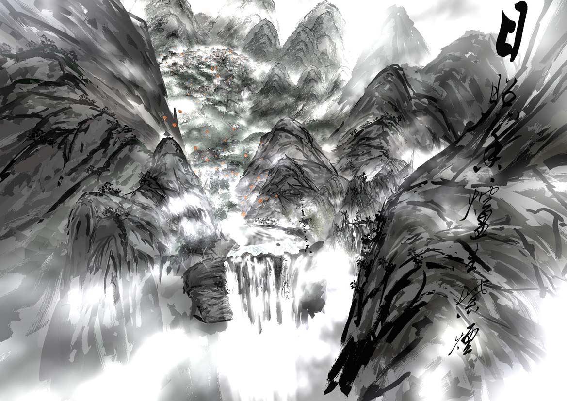 以傳統水墨元素融入虛擬實境繪畫,虛擬實境賦予藝術家超越傳統二維空間限制的繪畫能力,藉由三維虛擬空間繪畫和數位化,將有形與無形的文化資產保存,使全球觀眾跨越時間和空間的限制。本創作靈感源自李白詩作《望廬山瀑布》,詩中生動描繪廬山瀑布從高山之巔傾瀉而下,如銀河從九天落下壯觀震撼。受此啟發,以台灣的瀑布為題材,選定有「臺灣尼加拉瀑布」著稱的十分瀑布,瀑布飛流直下,環繞翠綠的山林豐富的生態。十分瀑布河水沿基隆河流經九份是台灣著名的山城,以悠久的礦業歷史聞名,獨具的建築和曲折狹窄的街道散發著懷舊與濃厚的人文氣息。以虛擬實境技術重新詮釋這些場景,帶來現代詩意的視覺震撼,創新展現台灣的人文與自然遺產。