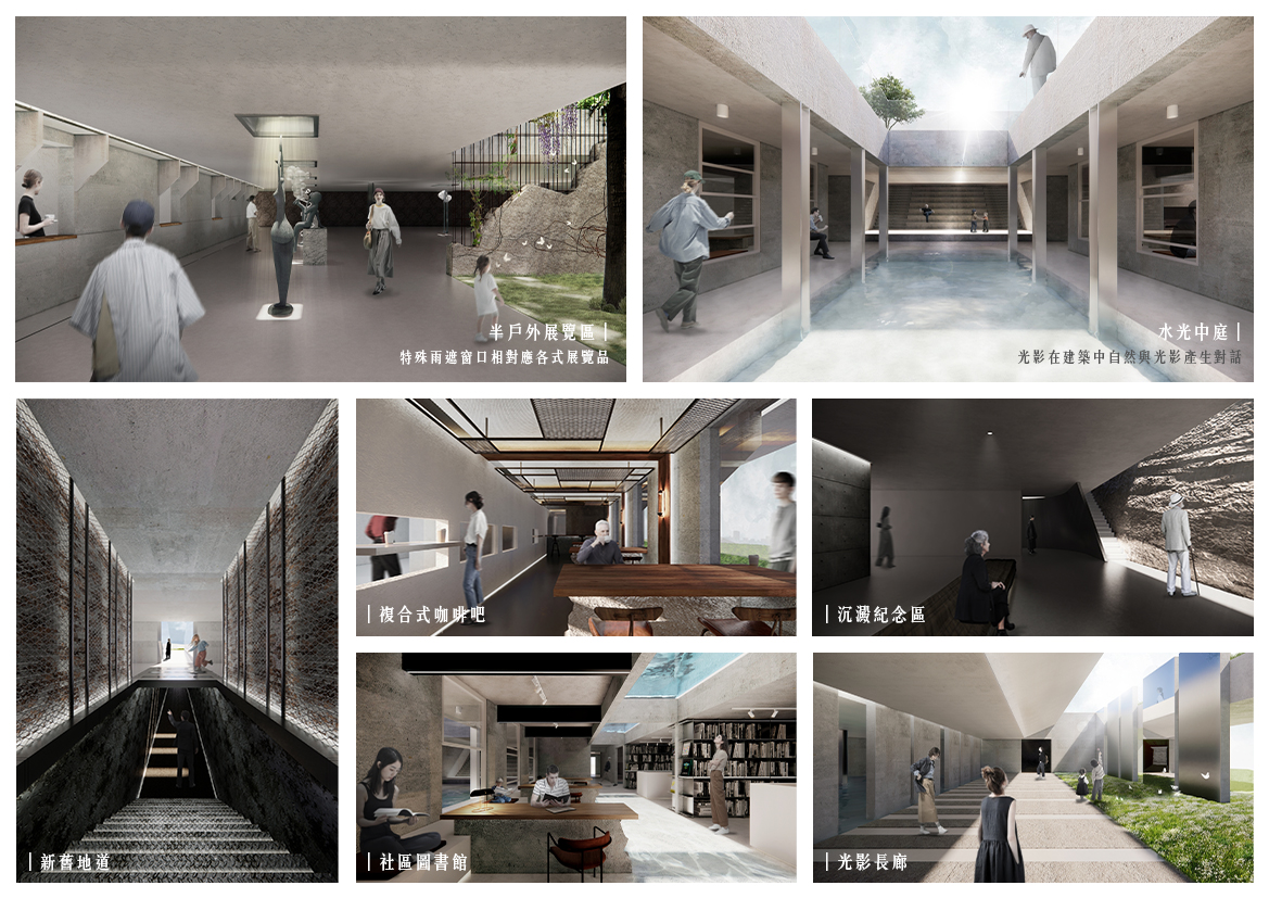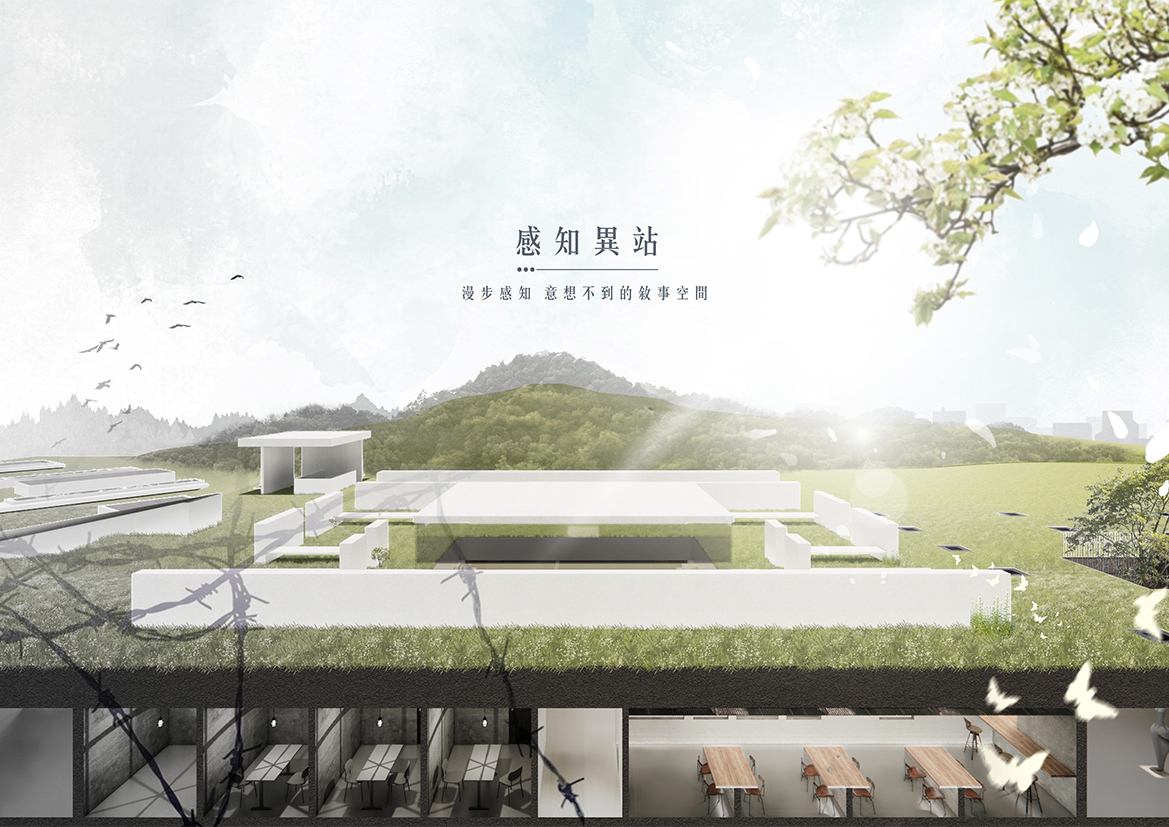 /漫步感知 破框思維的敘事空間/ 被城市遺忘、被竹林與霧氣包裹隱藏的安康接待室 — 政府的人權廊道計劃即將在此展開。 白色恐佈的記憶,對於舊世代是絕口再提的陰影; 新世代是缺乏共鳴與難以觸碰的歷史事件。 覆蓋皮層的全新面貌帶來自由遊走的人群;保留原始建築賦予新舊對話的可能。 在新舊之間探索,產生破框思維的解讀,反映現代社會盲從跟風的陋習、同時給予和不義事件和解的機會。 打開不義遺址、開啟對歷史事件與現代議題的自由意識。