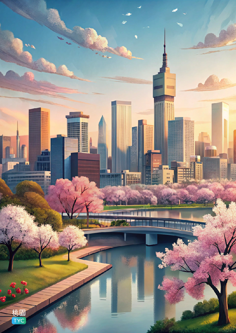 創作結合桃園的「桃」與埤塘此桃園特多的自然景觀作發想。清治時期因移民遍植桃樹而將此座城市命名為「桃仔園」,也就是我們現在稱作的桃園,簡稱桃;而埤塘為桃園擁有的一大自然景觀之一,眾多的埤塘從上空往下俯看形成特殊的水景,因此桃園也被稱為「千塘之鄉」。設計融合桃園「桃」與自然景觀「埤塘」,藉畫面呈現城市在桃花漫天紛飛下與千塘交融之景。