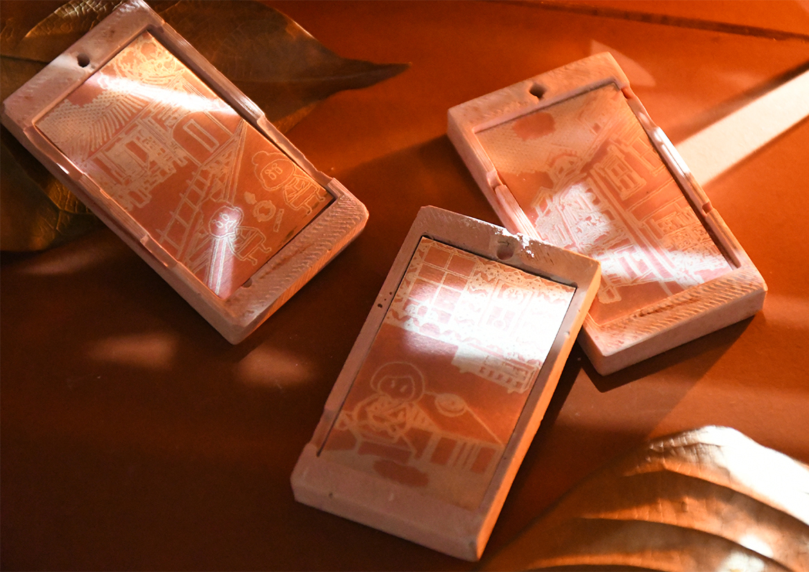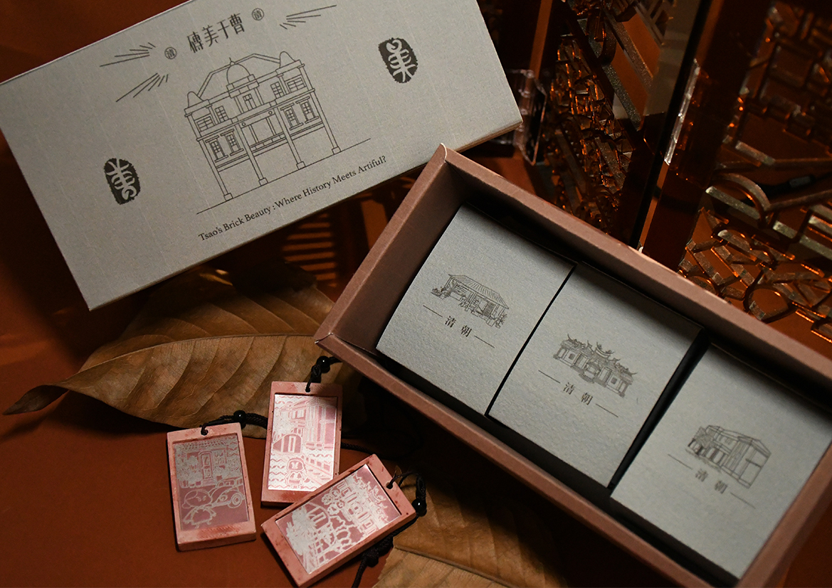 曹家洋樓建於1927年,是龜山當地特色建築,曹家洋樓是一座風格融合了閩南,日式與西洋風的建築,建築主材料則是磚頭。在2027年洋樓即將迎來百周年,因此我們希望可以透過我們設立的工作坊與設計文創商品來推廣在地文化以及提升洋樓的知名度。我們的主產品是仿磚吊飾,在仿磚的材質上加上人文圖來做搭配,能讓大家認識到洋樓的故事,除此之外也製作了人文圖萬年曆等,12張人文圖也代表著12個月份,能透過月份的輪替讓故事延續下去,也象徵著我們與曹家從清朝一起走到了現在。