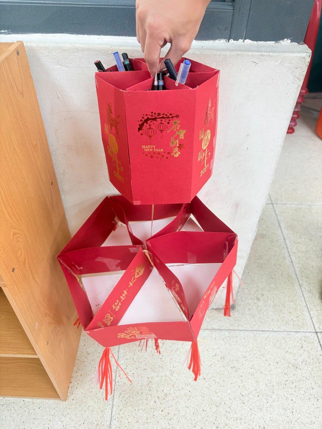 新年發紅包的習俗,源於古老的傳說和祈福的傳統新年發紅包的習俗源於古老的傳說和祈福的傳統。如何讓不用的紅包不變成垃圾?如何讓紅包可以重獲生機?於是我便想到可將它們做成可以收納東西的燈籠分為上下兩層上層可以當作筆下層可以放些零碎的小物件並且可放在桌子側邊不佔桌面上的空間這樣紅包便不再是一堆無意義的廢紙而是成為了擁有全新生命的收納包