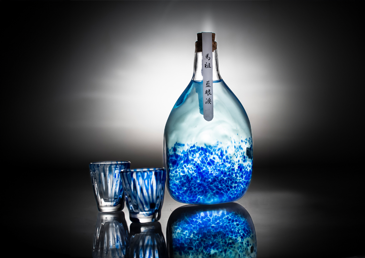 這款藍眼淚高粱酒杯靈感源自馬祖特有的自然奇觀——藍眼淚,藉由高透明度玻璃與藍色琉璃彩繪,重現夜海波光粼粼與藍眼淚的夢幻景致。杯身以精密吹製成型,並採用手工繪製與高溫燒製,使色彩與玻璃緊密結合,呈現飽和光澤。彩繪後經表面凹凸加工,讓酒杯在不同光線下反射迷人光影,同時增添藝術感與握持手感。此設計不僅提升馬祖陳年高粱的文化與情感價值,亦兼具收藏與日常使用功能。藍眼淚酒杯融合自然美感與台灣工藝技術,具備穩定的量產可行性與國際市場潛力,有望在推廣地方文化的同時,促進釀酒產業的銷售與知名度,實現經濟、文化與永續發展的多元共榮。