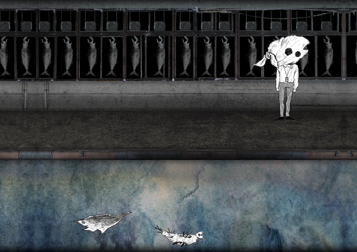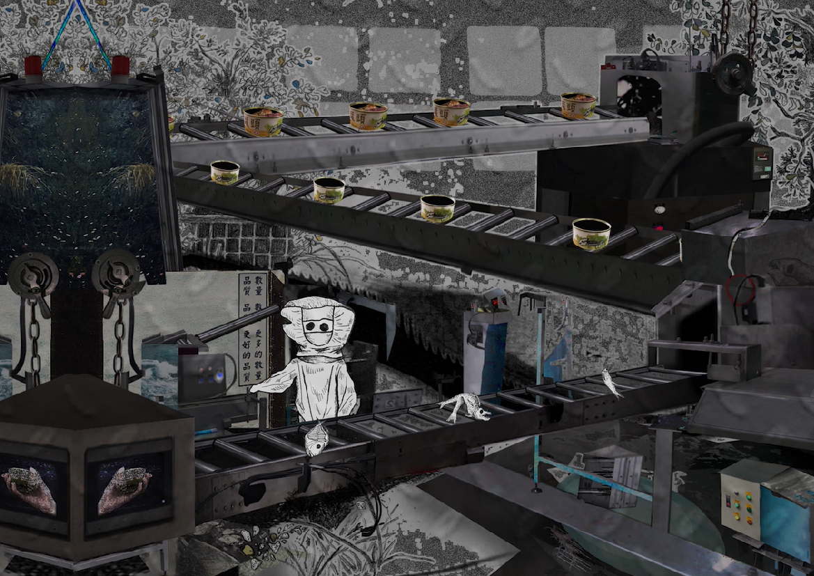 《HUMANLIKELY》的靈感源自於一個真實的魚罐頭工廠,並以視覺形式重建了類似的虛構場景。工廠的佈景和銀幕上的勞動分工場景暗示著一種隱含的社會結構。人物在四個場景中不斷重複機械的動作,他們重複著捕魚、殺魚、裝罐的動作。當觀眾在觀看過程中意識到這是一個不斷循環的空間時,他們會透過場景和人物提供的提示,去理解作品中循環隱喻的過程。