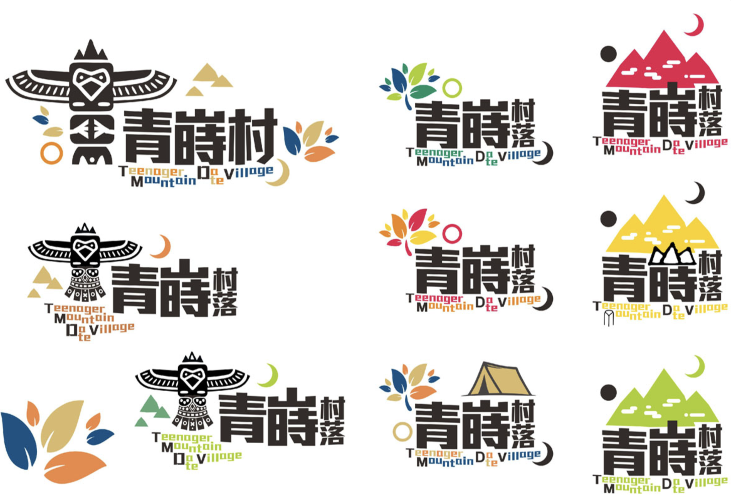 青蒔村是一個青少年山林田野露營的品牌設計,以木刻、祖靈、守護神、彩葉、宿營、山與日月的意象,象徵青少年走向田野山林,在山中宿營度過的多元、原生、美好、安全而豐富充實的時光。