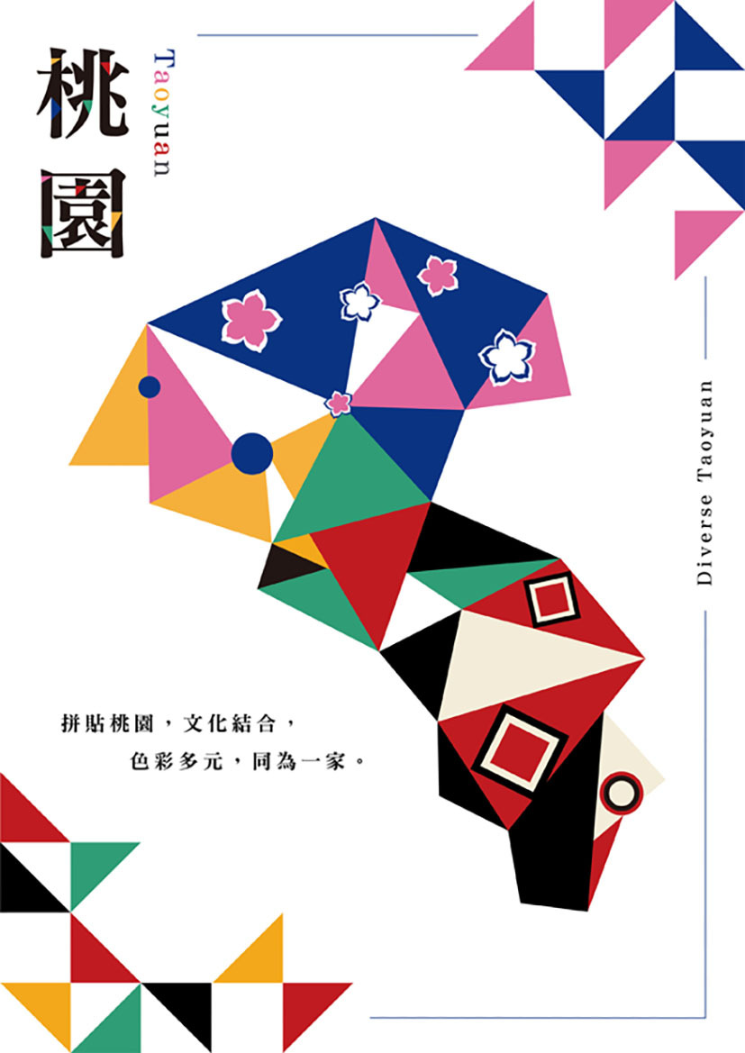 桃園有許多不同族群的文化,有客家、原住民、新住民、眷村等四大元素,利用拚貼創意做結合,做出屬於桃園獨特的樣貌,融入四大族群,結合桃園地圖,讓更多人更加了解桃園這塊美麗之土。