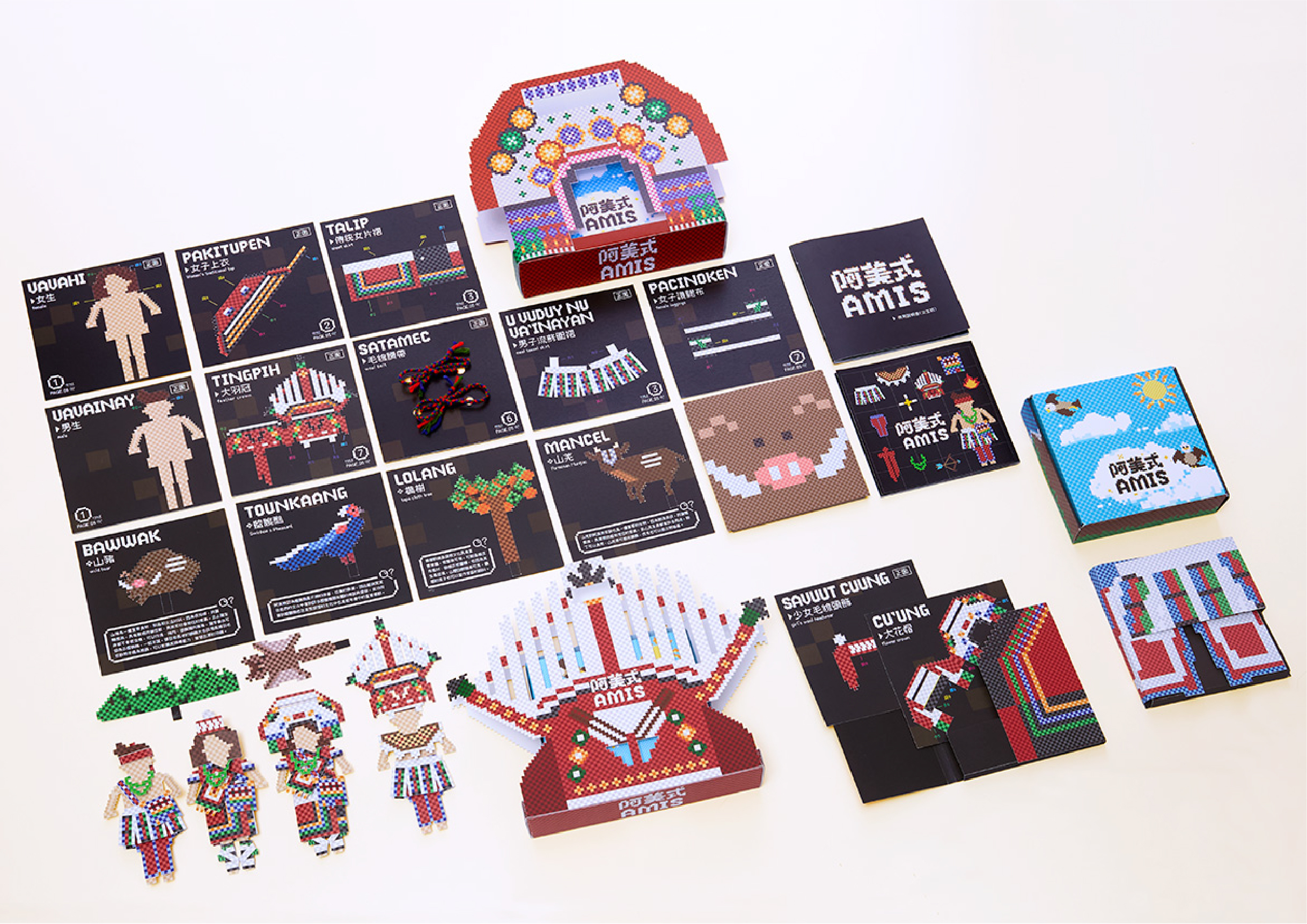 以阿美族傳統服文化為主旨,我們發現到市面上並沒有任何一本相關的教材,使 族人與大家無法對於這個民族或文化有更多的認識與了解,因此我們設計了這項 專案,介紹阿美族各年齡階層的服飾,重點發展傳統服如何穿著的同構造與步驟 製成的紙娃娃教材,讓大眾與族人可以方便地學習。
