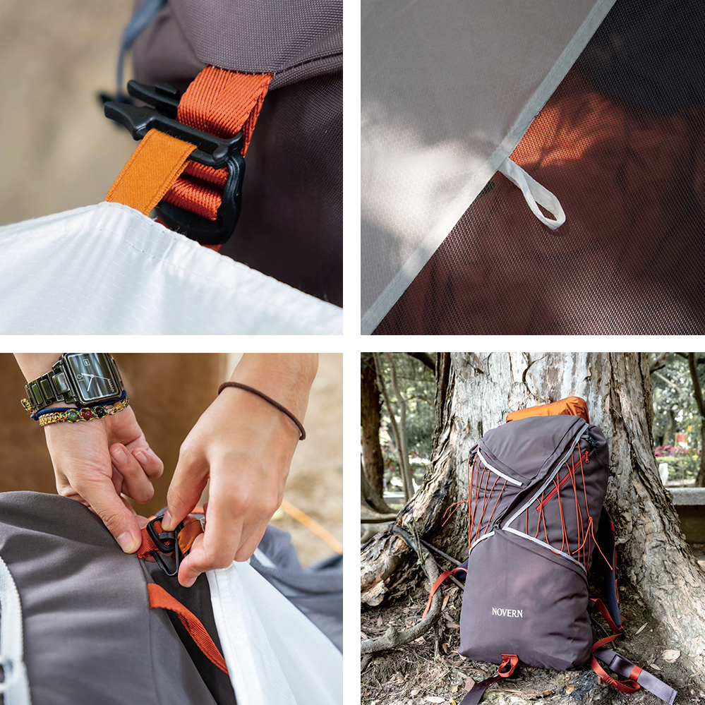 她們一開始的方向是山難急救包或攻頂包,想做一個在山難時什麼都能解決的包,但很快的,老師與登山者的經驗分享使他們明白,山上的情況太多了,不可能存在一個能解決一切的包包,因為三個人回到食衣住行來重新收斂,他們決定從裝備中體積最大的「帳篷」著手,將登山包的支架結構與個人帳做整合,整合出輕量新選項。