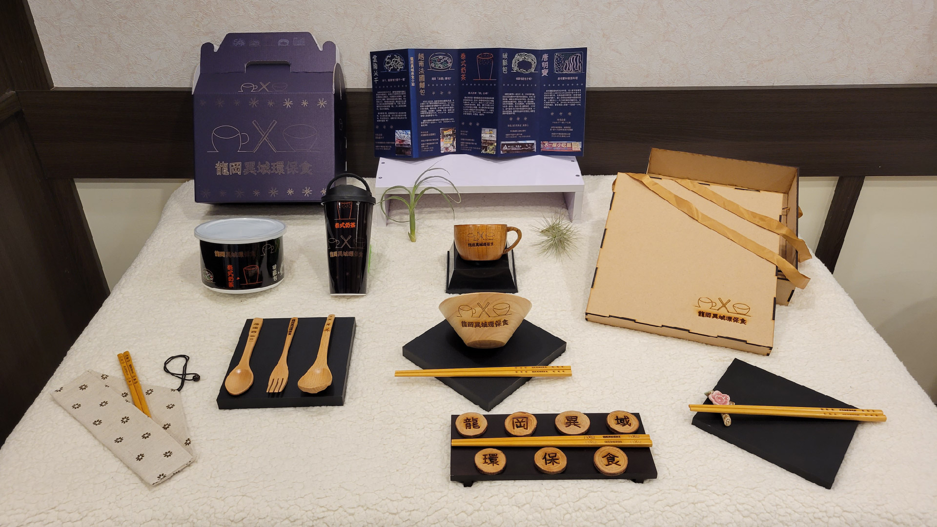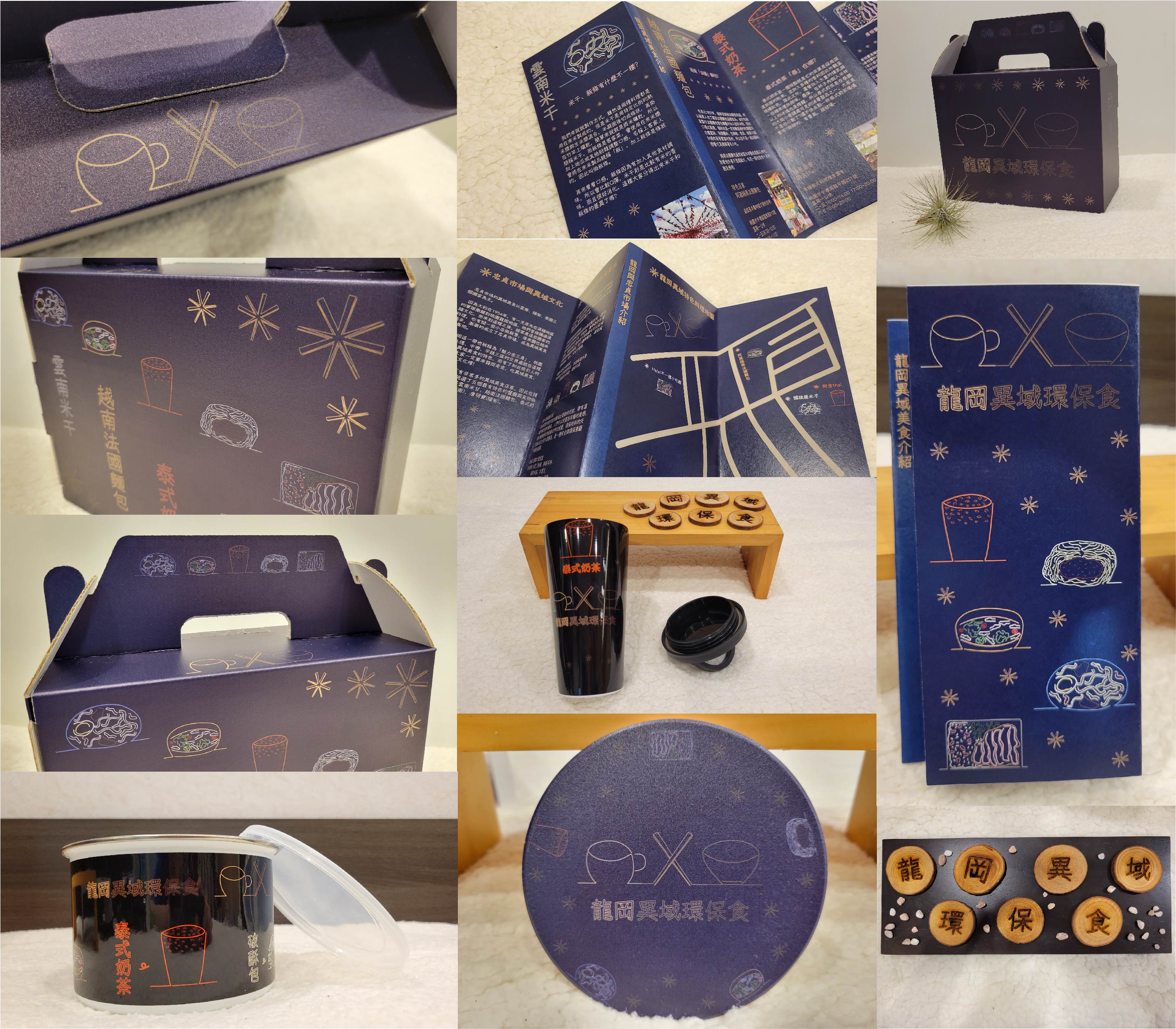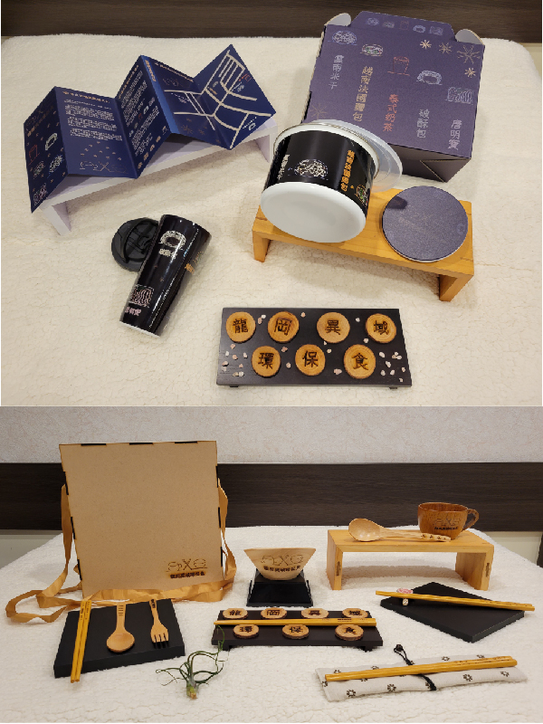 我是土生土長的桃園人,看到桃園被鄉民票選為全台最難玩的縣市,因此我想要用一個以文創為主軸的發想方式,為桃園推廣在地文化,並結合減塑綠環保,還能帶動桃園的經濟,讓其增加觀光客,我發現能最快吸引觀光客目光的類型就是食物,而桃園龍岡與忠貞市場地區具有獨特的異域美食,所以我設計出了二套不同質感的環保餐具,和摺頁手冊,向觀光客介紹美食的特色與龍岡異域文化,也讓遊客遊玩回到家後,再次使用文創環保餐具時,又會想再次造訪桃園龍岡忠貞金三角。